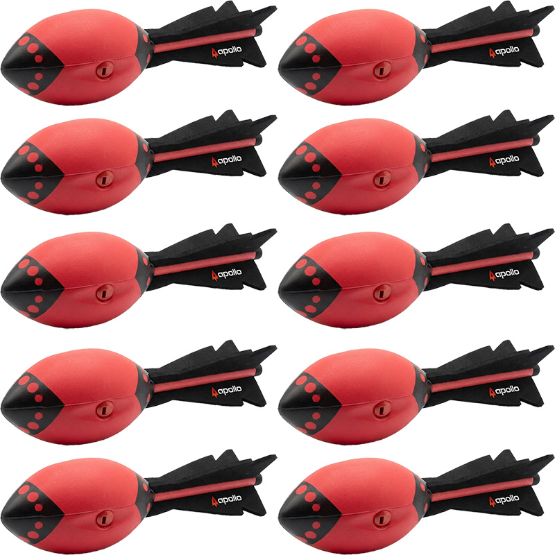 The Apollo Whistle Throw Rocket 32.5cm has a extra soft nose with foam fin tail this light torpedo shaped ball glides through the air. Great for encouraging catching and throwing skills between children.