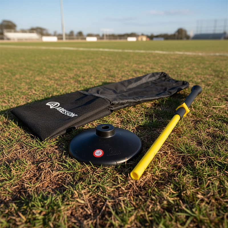 Whether you're a beginner or guiding the next generation of rounders players, the Aresson Batting Tee and Base is your perfect partner on the field. Imagine the thrill of nailing that perfect swing, thanks to a tee that adjusts seamlessly from 65.5cm to 91cm. This ensures it caters to every player, regardless of age or height. Crafted from durable rubber, the tee withstands even the most rigorous practice sessions, whether wielding a softball or baseball. Plus, with its Rounders England approval, you can trust in its safety and performance standards.