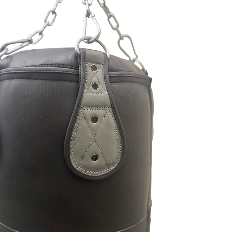 Designed for relentless punishment, its durability is second to none. The construction features 6 heavy-gauge D-ring hangers secured by a double layer of leather and reinforced nylon webbed strapping. This strapping is cross-stitched directly into the bag's body, creating an exceptionally strong and stable anchor point that can handle powerful combinations without compromise.
