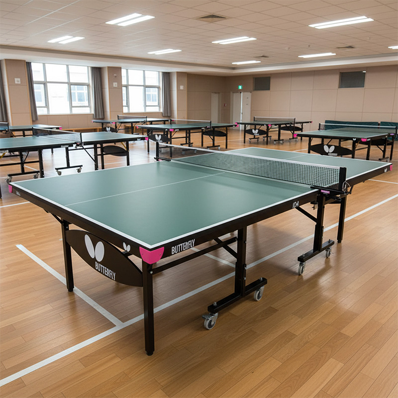 Introducing the Butterfly ID4 Table Tennis Table, where convenience meets championship quality. With its 22mm professional-grade playing surface, this indoor table is perfect for seasoned players and beginners alike. The heavy-duty steel frame, paired with magenta corner protectors and front brakes, ensures unwavering stability and safety during intense rallies. Thanks to its ID4 specification rollaway system, setting up or storing this table is a breeze. Just add the wheels, and you're ready to play or pack away effortlessly.