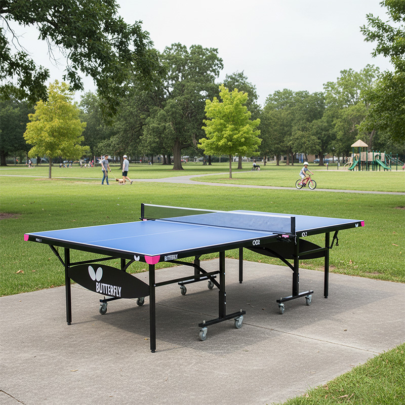 Experience the thrills of table tennis anywhere with the Butterfly OD2 Outdoor Table Tennis Table. Designed for both indoor and outdoor play, this versatile table promises hours of fun whether in your garden or living room. The 12mm plywood resin weatherproof top ensures a consistent bounce and robust performance, while the galvanised steel frame offers added durability. With its 8-wheel system, the table is effortlessly portable, easily splitting into two halves for hassle-free storage.