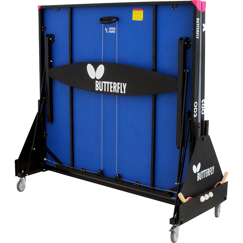 Setting up your game has never been easier, thanks to the quick-fold system that allows effortless assembly and storage. The rollaway design means it's convenient to manoeuvre and tuck away when not in use. But the excitement doesn't end there; included with the table is a full-length weatherproof cover, a Butterfly outdoor net and post set, two reversed sponge bats, and three quality practice balls. Backed by a five-year guarantee, the Butterfly OD3 Outdoor Table Tennis Table promises endless fun and professional playing quality right at your doorstep.