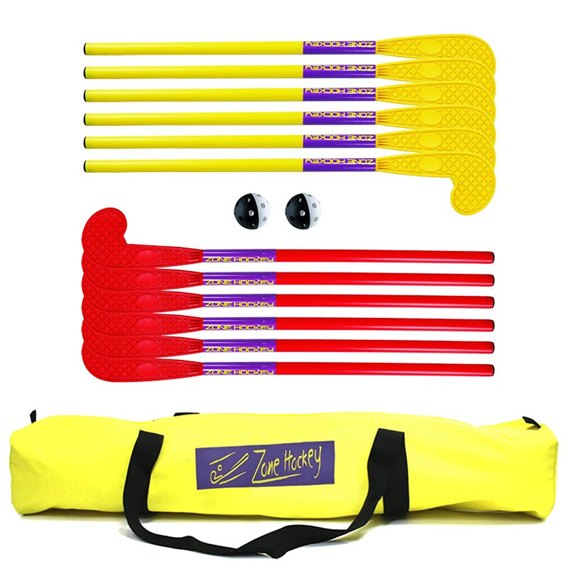 The set includes 12 high-grade, durable Polythene sticks—six in fiery red and six in vibrant yellow—accompanied by two perforated balls and a convenient carry holdall. The sticks’ ergonomic design, featuring a 25mm shaft diameter and total length of 85cm, caters perfectly to junior players. Whether playing indoors or out, Eurohoc’s Zone Hockey offers an exciting and dynamic introduction to the sport, making it a popular choice among youth sports enthusiasts.