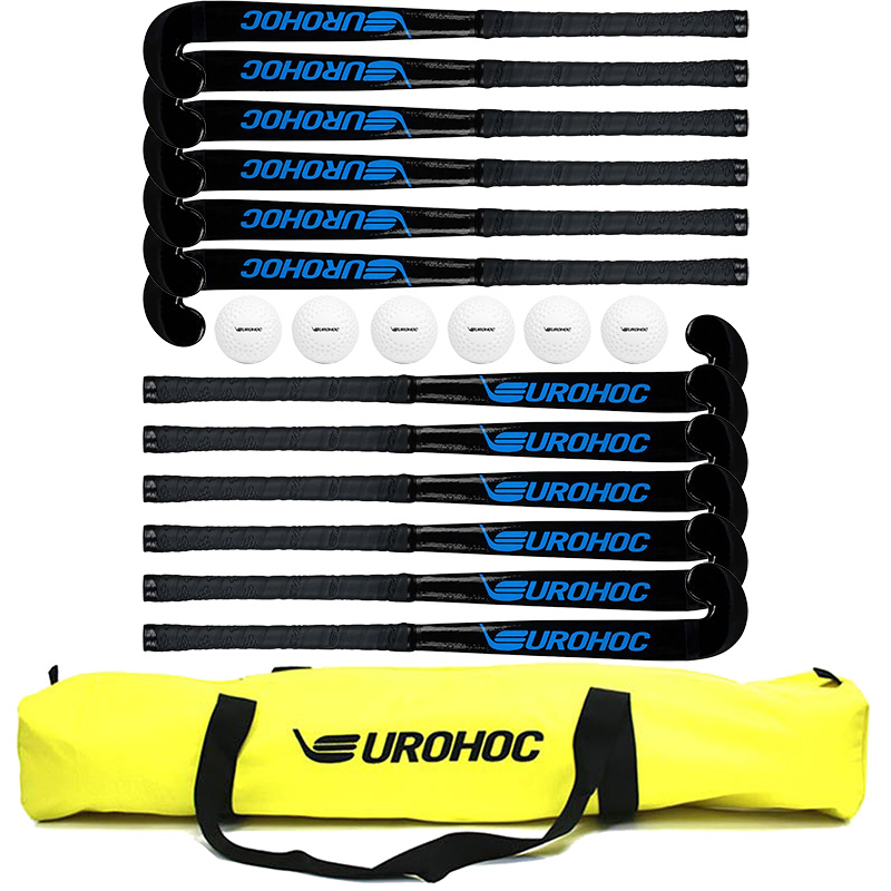 - Each set includes: 12 x Hockey Sticks, 6 x Hockey balls & 1 x Holdall.