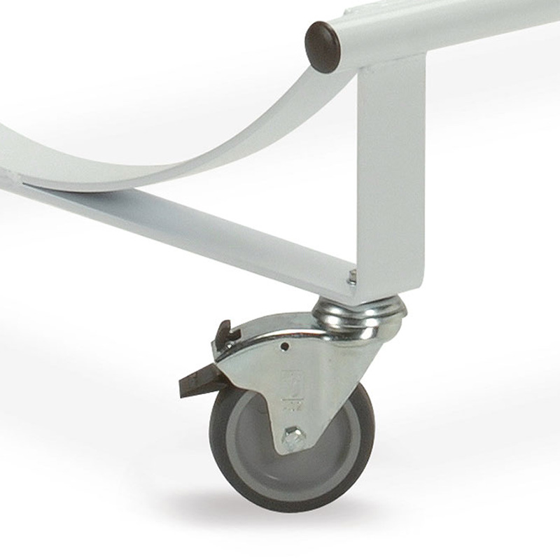 The Harrod Sport Carpet Trolley is built for practicality and manoeuvrability. It features four non-marking 100mm swivel castors, with foot brakes on two wheels for added stability and control. Sized at 0.7m wide by 1.4m long and 0.32m high, and weighing just 14kg, it's compact yet powerful—offering you a reliable solution for transporting your sports carpets without the hassle.