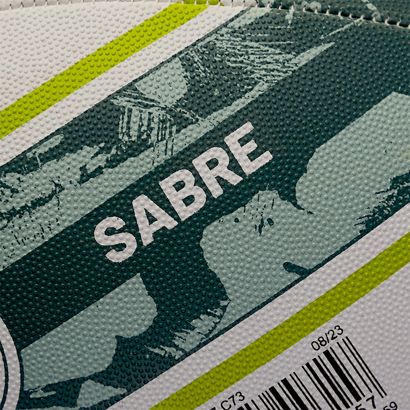 Mitre's Sabre Training Rugby Ball is your ultimate companion for honing your skills on the pitch. Especially crafted for those who are serious about their game, this ball stands out with its striking high graphic design, promising not only durability but also an impressive performance. The natural rubber compound surface, combined with deep pimple embossing, ensures unparalleled grip and handling, making it easier to perfect those passes and obtain precise control during play. Whether you're a novice or an experienced player, the Sabre adapts to your needs with its availability in sizes 3, 4, and 5, accompanied by a handy size chart to ensure the perfect fit.
