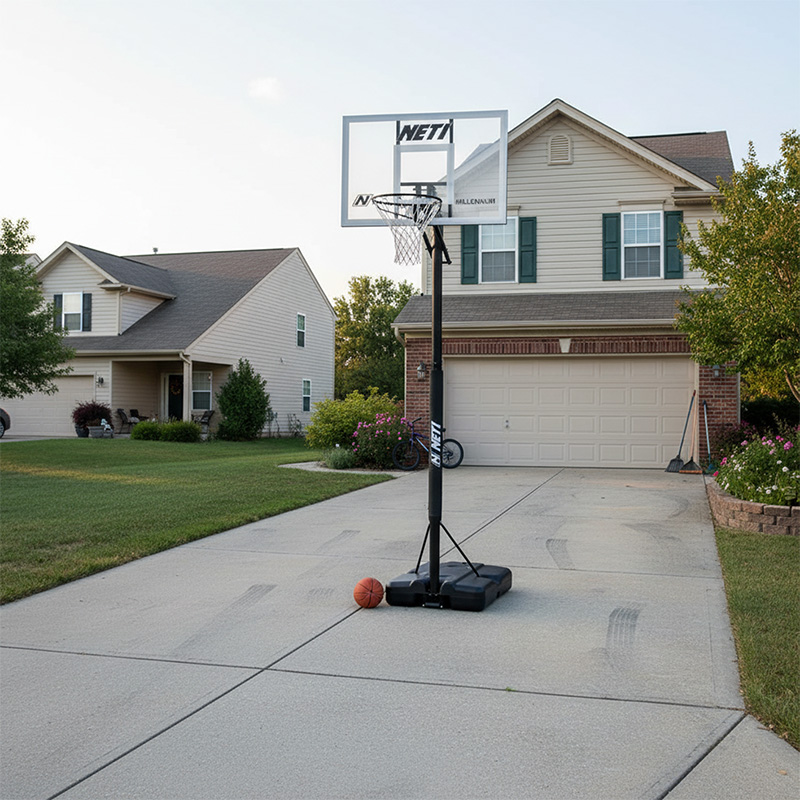 Designed for all-weather use, this basketball set features a 145-litre base that fills with either water or sand, providing unwavering stability. And when it's time to move the game, the built-in wheels make transportation a breeze. With a durable steel frame and an all-weather net, the Net1 Millennium is engineered to withstand extreme conditions and provide years of enjoyment. Elevate your game with this portable basketball system—perfect for those who crave convenience without sacrificing quality.