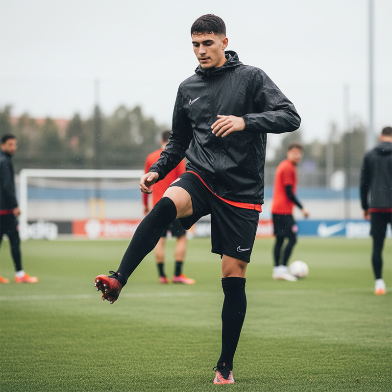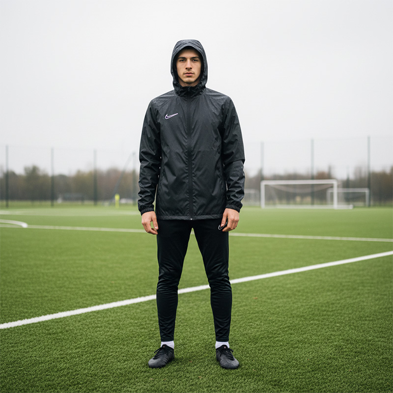 Beyond its protective prowess, the Nike Academy 25 Senior Rain Jacket is a testament to sustainable innovation. Made from 100% recycled polyester, it combines performance with eco-consciousness. Its smart side and back panel construction not only showcase an efficient design but also reflect a commitment to reducing material waste. With zippered pockets for secure storage, this rain jacket is not just a piece of clothing—it's an essential part of your sports gear, keeping you ready for whatever the weather throws your way.
