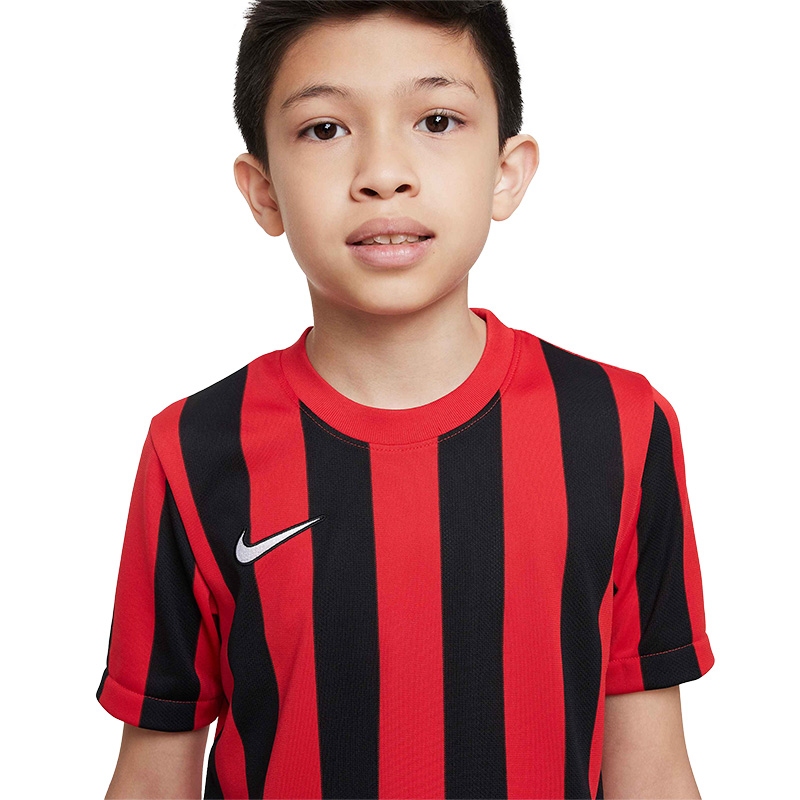 Elevate your young athlete's game with the Nike Striped Division IV Jersey Short Sleeve Junior Football Shirt. Designed for those who live and breathe football, this jersey combines style and performance to ensure they're always ready to make an impact on the pitch. The vibrant yarn-dyed stripes not only look striking but also inspire confidence, turning heads as they dribble past defenders.