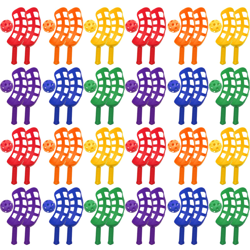 - Pairs of Scoop Rackets (one pair of each colour - Red, Yellow, Blue, Green, Purple and Orange).