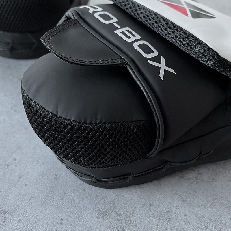 - The Pro Box Professional style curved hook and jab pads are made from top quality 'easi-grip' curved leather and PU which makes them more affordable.