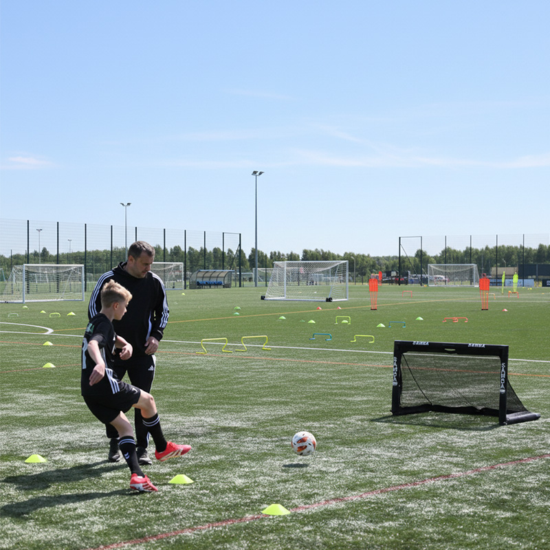 Premium uPVC frame - Made from 68mm shatterproof uPVC, ensuring long-lasting durability. Quick Attach Mesh Net – Reduces shot tension and can be removed or attached quickly. Proudly made in the UK – Manufactured to high standards. Tested to BS EN16664 – Independently tested for safety and quality. Versatile - Use on both 3G or natural grass pitches.
