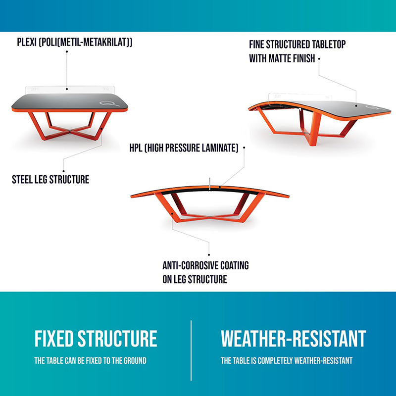 Designed with precision and practicality, the TEQ ONE Teqball Table features a robust steel leg structure coated to resist corrosion, keeping it stable and secure. Easy to assemble and even fixable to the ground, it’s ready to withstand intense matches. Its dark grey table top complements the vibrant orange legs, creating a striking visual appeal that matches its game-enhancing capabilities. With the TEQ ONE Teqball Table, improve your reflexes, hand-eye coordination, and stamina in style, making it the ultimate addition to your sporting arsenal.