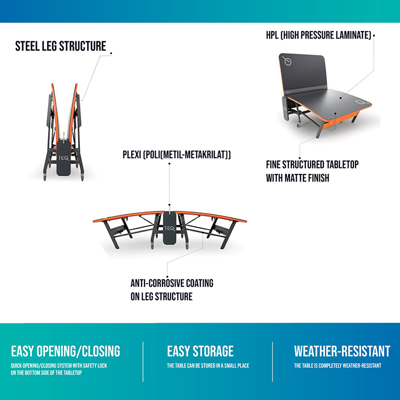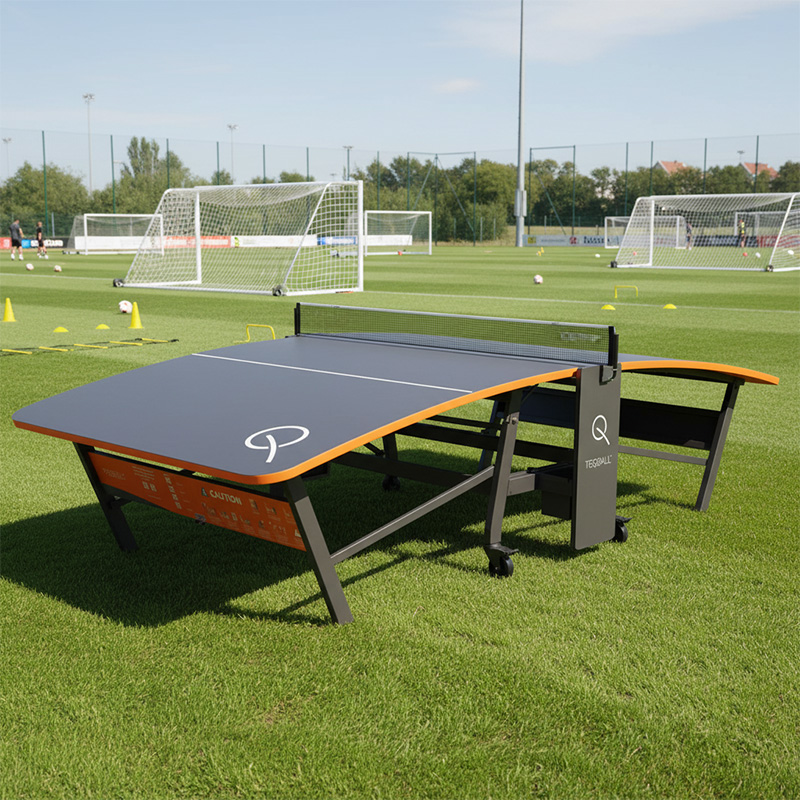 Elevate your game with the Teq Smart Teqball Table, the pinnacle of versatility and durability in sports equipment. Crafted from high-quality materials, this table is weatherproof, waterproof, and UV resistant, ensuring relentless performance both indoors and outdoors. Its sleek design features a transparent PMMA plexiglass net and a fine-structured HPL table top, all supported by a robust steel leg structure with an anti-corrosive coating. Whether you're playing in a professional competition or honing your skills solo, the Teq Smart Teqball Table adapts to every need with its foldable, easy-to-transport design.