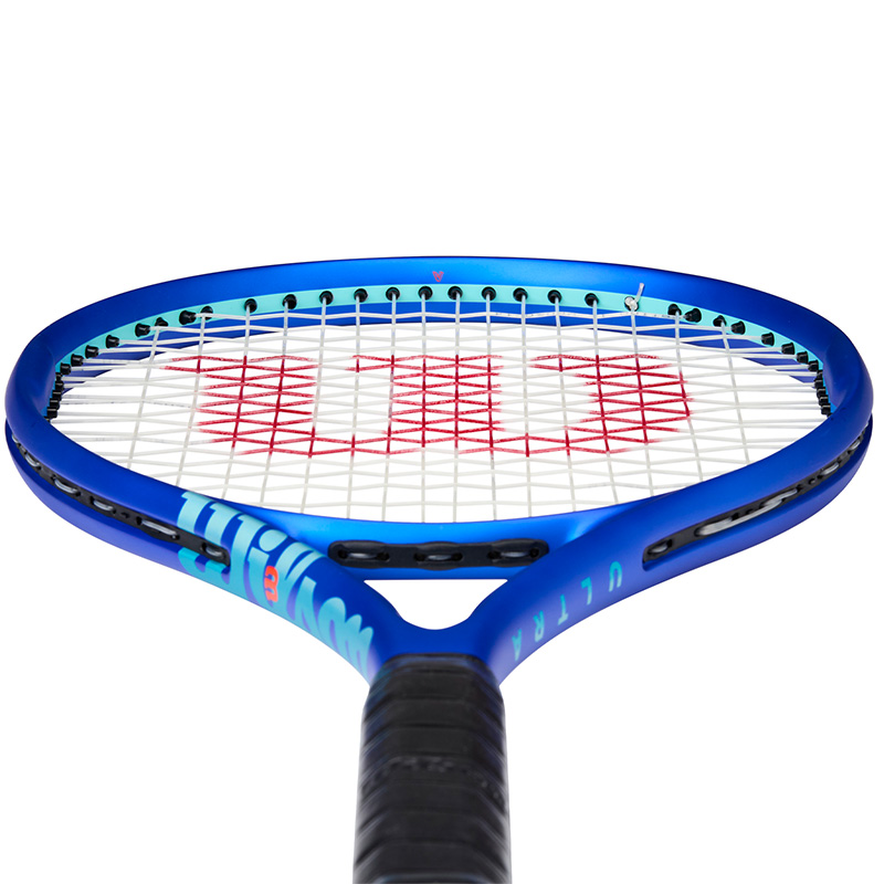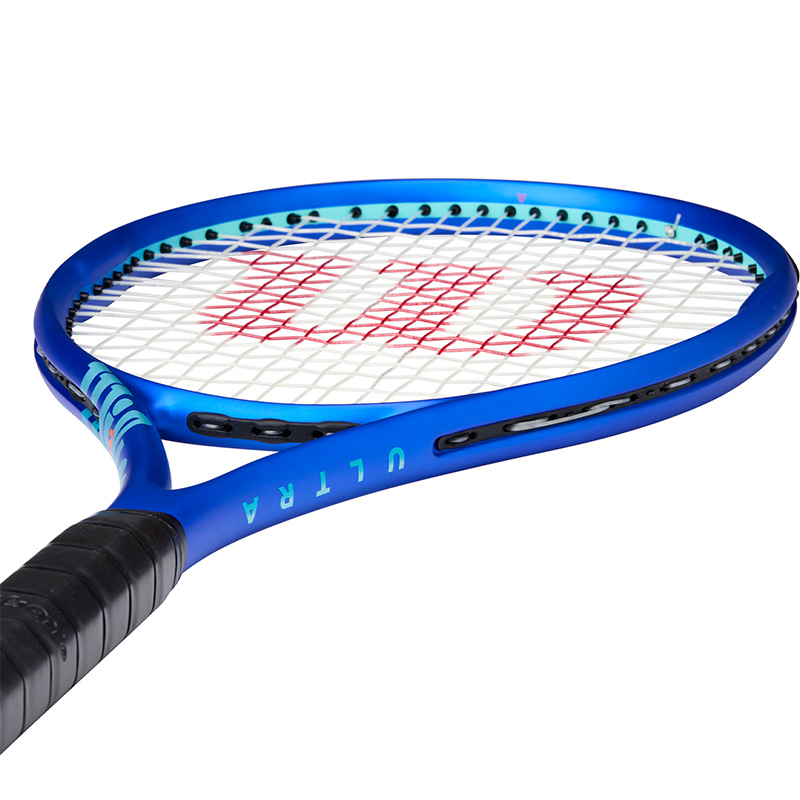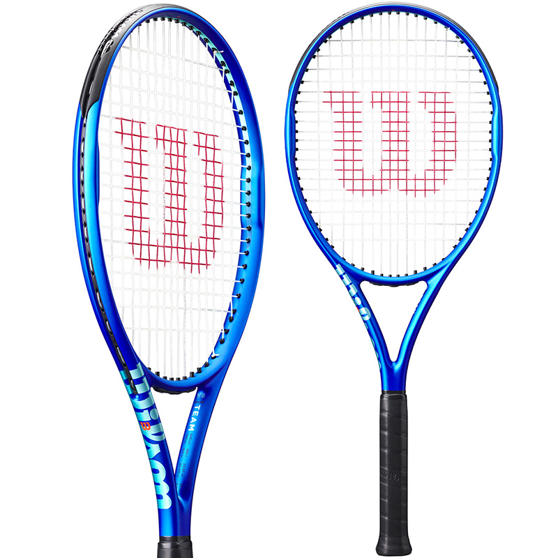 The Wilson Ultra Team V5 Tennis Racket lets players harness explosive performance and playability with a team-centric design that's as forgiving as it is powerful. SI3D technology offers enhanced pocketing and shot-shaping to generate maximum power. This lighter-weight frame utilizes a full carbon handle that optimizes feel and enhances stability. Eco-friendly bumper, grommet and end cap components reduce environmental impact while its game-changing performance allows intermediate players to make a huge impact on the court. Finished in a stunning shade of "electric indigo."
