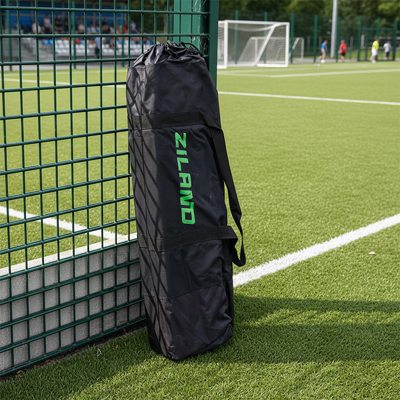 Transform your training sessions with the Ziland Academy-Flexi Pop Up Football Goal 6ft x 4ft, the ultimate companion for coaches and budding football stars alike. Picture a versatile goal that seamlessly adapts to your every need, whether you're perfecting set pieces in the garden, refining strategies during practice drills, or engaging in exhilarating 3v3 matches. Crafted to perform on any surface—be it grass, 4G, astro-turf, tarmac, or the polished floors of an indoor sports hall—this goal stands ready to elevate your game. Its self-weighting design ensures stability, while the included 4mm steel U-pegs provide additional security on softer grounds, keeping the goal firmly anchored regardless of the intensity of play.
